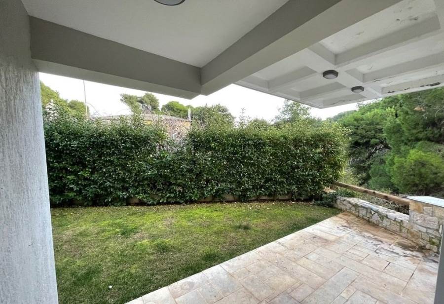 Η διαρύθμιση του ακινήτου έχει ως εξής: Στο ισόγειο υπάρχει μεγάλο σαλόνι ενιαίο τραπεζαρία, open plan κουζίνα, 1 wc και τζάκι. Το ισόγειο επίσης διαθέτει βεράντα ενώ έχει πρόσβαση και στον ιδιωτικό κήπο της κατοικίας.